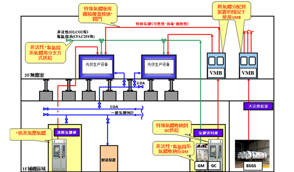 特種氣體是光電子、微電子等領域,特別是超大規(guī)模集成電路、液晶顯示器件、非晶硅薄膜太陽能電池、半導體發(fā)光器件和半導體材料制造過程不可缺少的基礎性支撐源材料。它的純度和潔凈度直接影響到光電子、微電子元器件的質(zhì)量、集成度、特定技術(shù)指標和成品率,并從根本上制約著電路和器件的精確性和準確性。沃飛科技提供太陽能光伏工廠所使用的高純度氣體(O2/Ar/N/H2/He等)、特氣(SiH4/GeH4/PH3/AsH3/SbH3/B2H6/BF3/NF3/PF3/PF5/CF5/CF4/C2H6/C3F8等)綜合供氣系統(tǒng);排氣處理、監(jiān)視系統(tǒng)的綜合管理系統(tǒng);建立以安全為第一的特氣管理輸送系統(tǒng)。從設計、選型、制造、安裝、測試、調(diào)試和系統(tǒng)托管服務