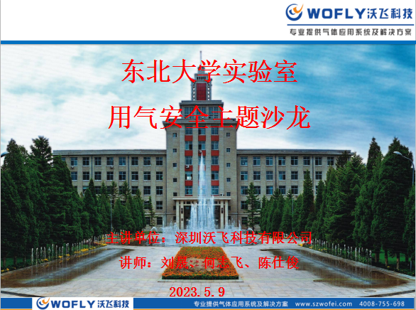 時不我待推進科技自立自強,只爭朝夕突破‘卡脖子’問題。在科技競爭日益激烈的今天,百年老校東北大學一直在努力科研創(chuàng)新,各院系都在加快實驗創(chuàng)新。為了保障實驗室的安全用氣,2023年5月9日東北大學材料科學與工程學院李錦紅副院長、張濤教授特邀請深圳沃飛科技為實驗室氣體規(guī)劃和安全應急做了專題講座。受邀請嘉賓有,廣東省工業(yè)氣體協(xié)會專家委員會主任專家劉晟、深圳沃飛科技有限公司總經理何志飛和技術總監(jiān)陳仕俊。