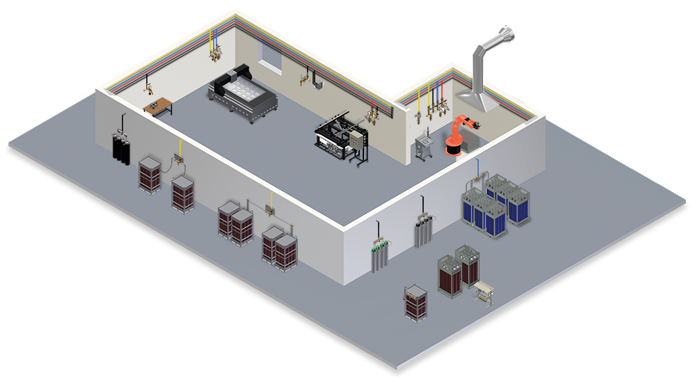 1、配有專門的控制設(shè)備,以排除每次更換氣瓶時引入的雜質(zhì),確保管路氣體終端的純度。