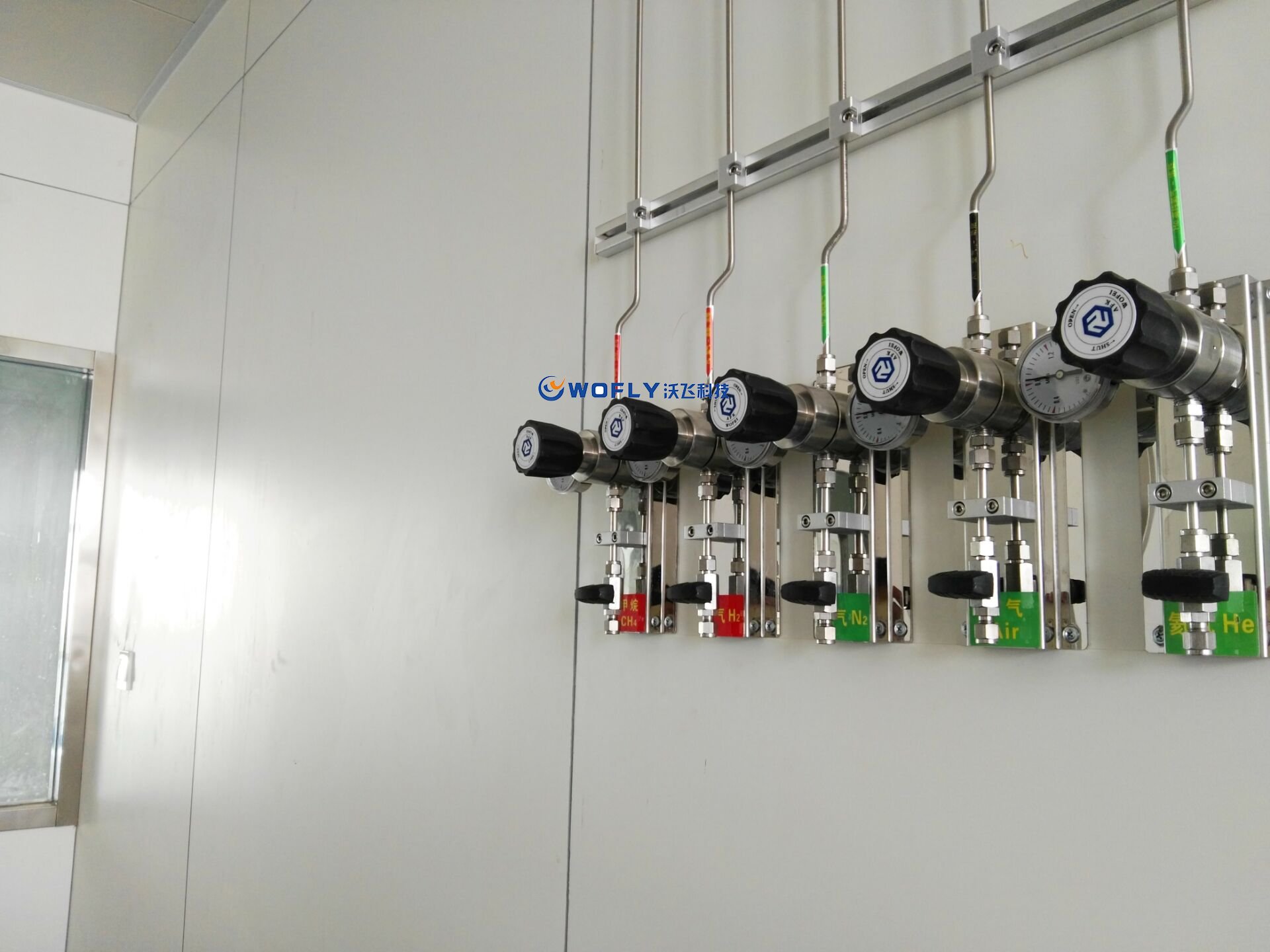 3.  解決了壓力問(wèn)題。沃飛實(shí)驗(yàn)室集中供氣的二級(jí)減壓系統(tǒng)能穩(wěn)定、有序的將每種氣體都安全輸送到使用點(diǎn),減少壓力風(fēng)險(xiǎn)。同時(shí),整個(gè)氣路系統(tǒng)壓力最大的地方也就是氣瓶的出口,由于氣瓶間相對(duì)獨(dú)立,可以減少氣瓶壓力的可能危害,將對(duì)人體和儀器的危害降到最低。